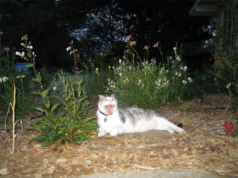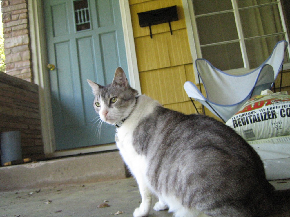 Tito made numerous unscheduled appearances on the ACTV show “Movies On MoPac.” The show was filmed in his yard, was basically unedited, and he was the only guest allowed to jump onto the table. He would also frequently chase away large dogs that had wandered onto the set from an adjacent park. Seeing that cat chase off a Golden Retriever is something I will never forget.